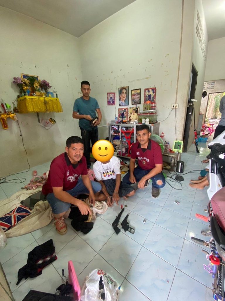 ๒.อาวุธปืน แบบประกอบขึ้นเอง ใช้กับเครื่องกระสุน ขนาด .๒๒ จำนวน ๑ กระบอก