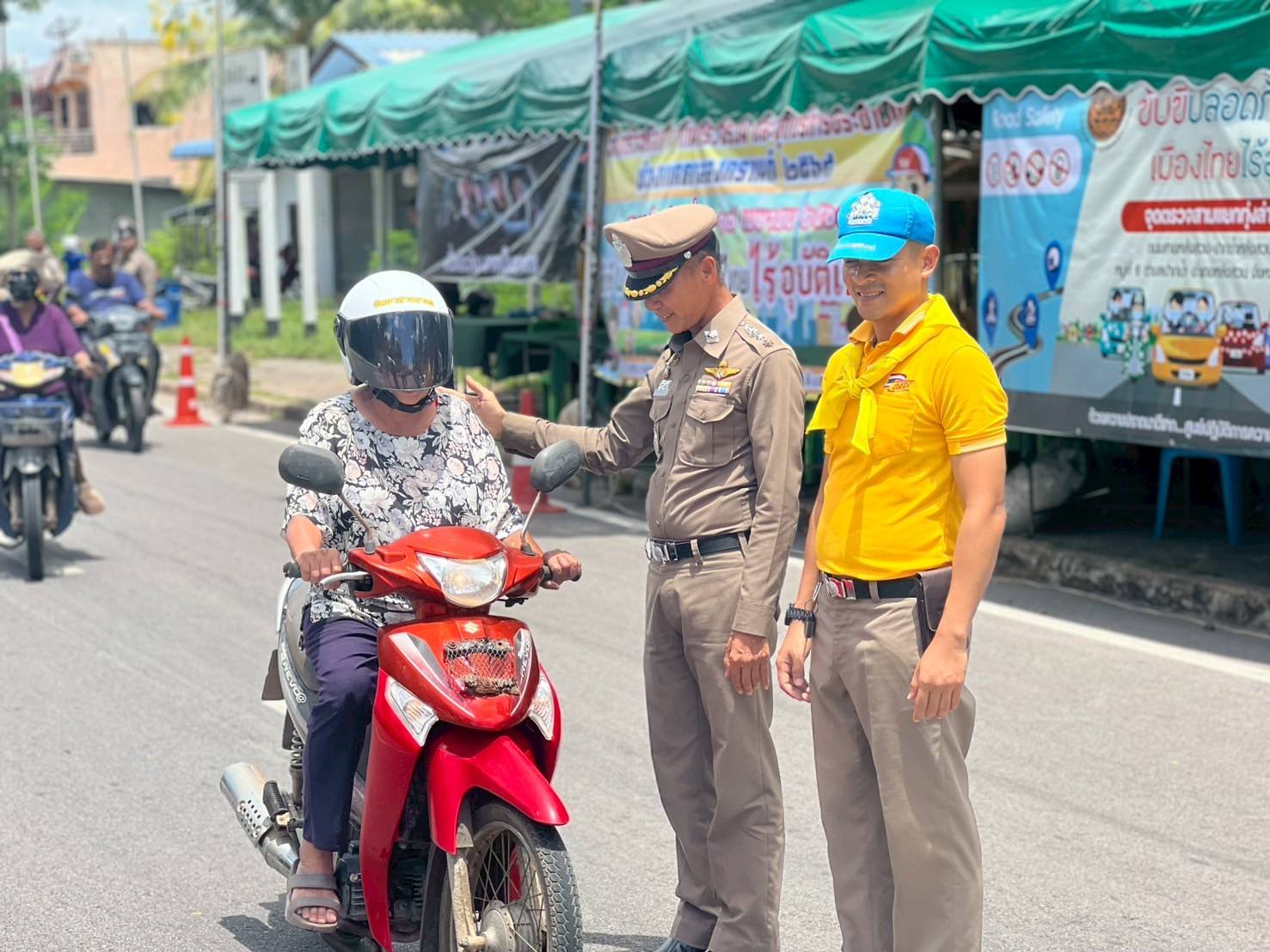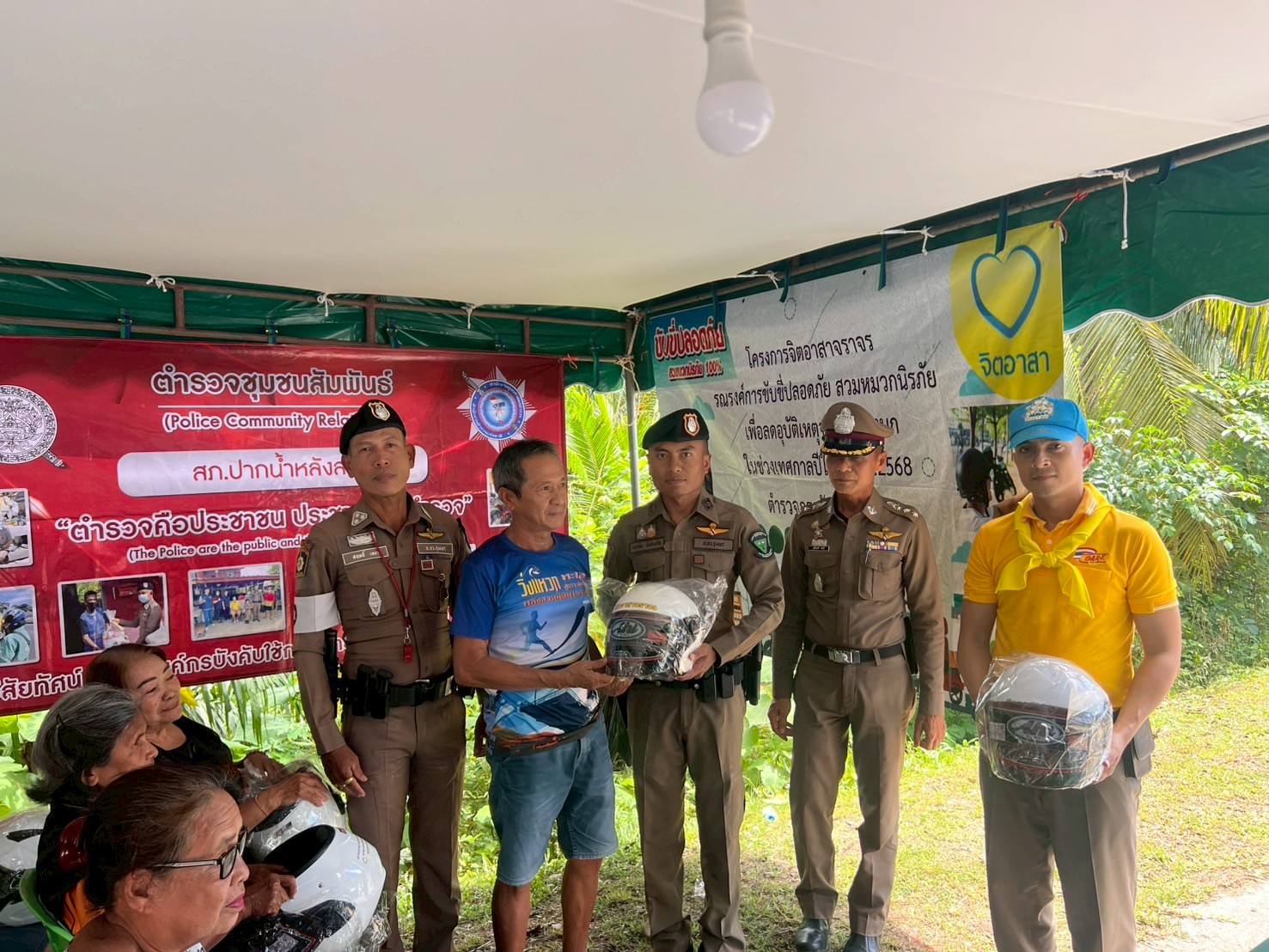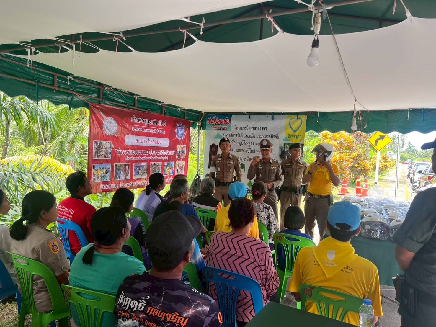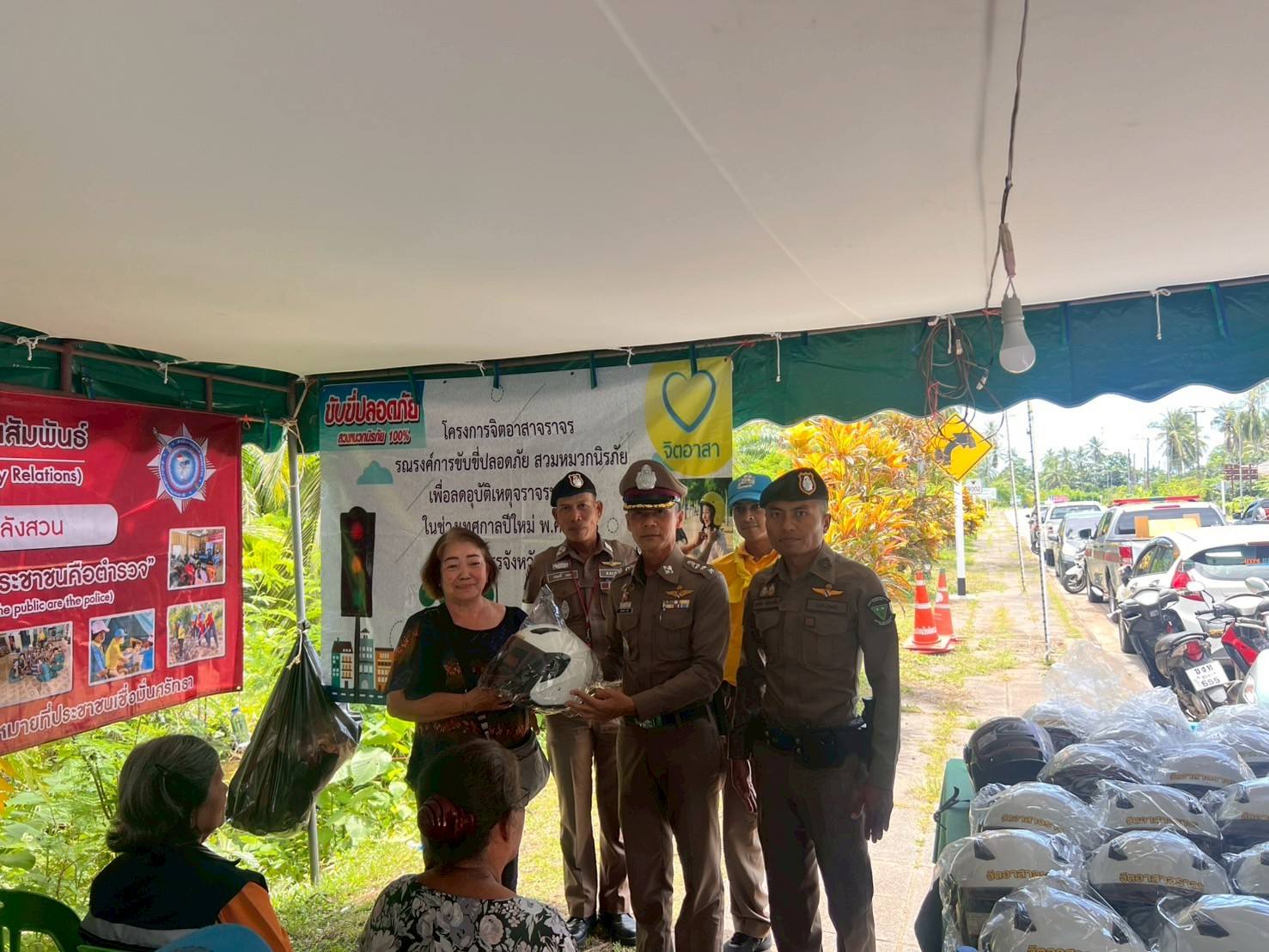 พ.ต.อ.สุริยนต์ ชมมี ผกก.สภ.ปากน้ำหลังสวน พร้อม พ.ต.ท.ครรชิต ชังช่างเรือ สวป.สภ.ปากน้ำหลังสวน ข้าราชการตำรวจจิตอาสา ชุด จราจร จนท.ชุด ชมส.ฝ่ายปกครอง และ อสม. ได้ร่วมกันดำเนินกิจกรรมจิตอาสาจราจร รณรงค์ขับขี่ปลอดภัยสวมหมวกนิรภัย เพื่อลดอุบัติเหตุในช่วงเทศกาลสงกรานต์ 2568 ได้อบรมให้ความรู้เกี่ยวกับความปลอดภัย ในการสวมหมวกนิรภัย และกฎหมายจราจรต่างๆ พร้อมทั้งได้แจกหมวกนิรภัย ให้กับประชาชนที่เข้าร่วมกิจกรรม เพื่อลดอุบัติเหตุทางถนน ในช่วงเทศกาล สงกรานต์ 2568 ณ จุดตรวจสามแยกทุ่งล่าง ต.ปากน้ำ อ.หลังสวน จ.ชุมพร โดยมีประชาชนเข้าร่วมโครงการ จำนวน 22 คน