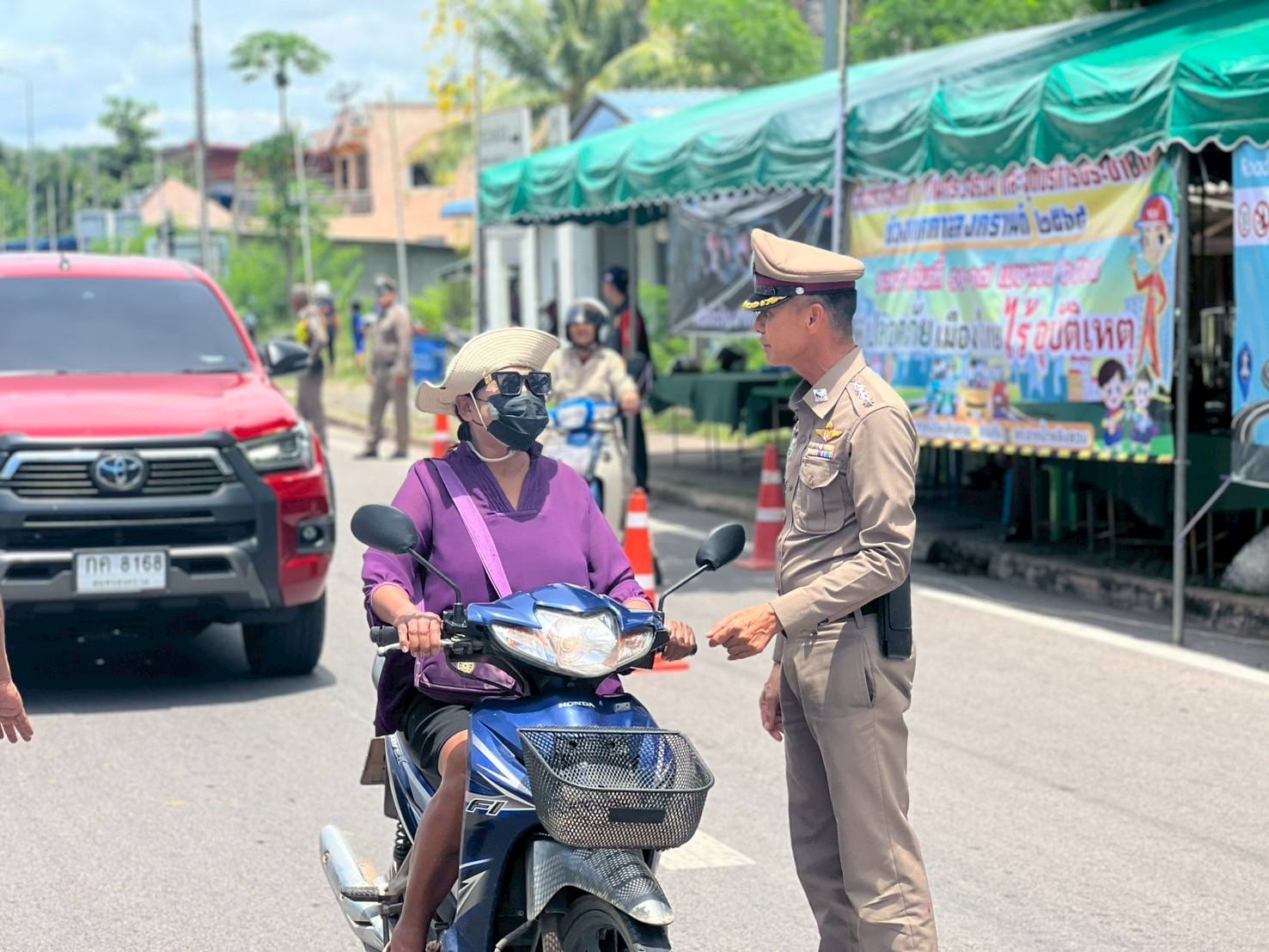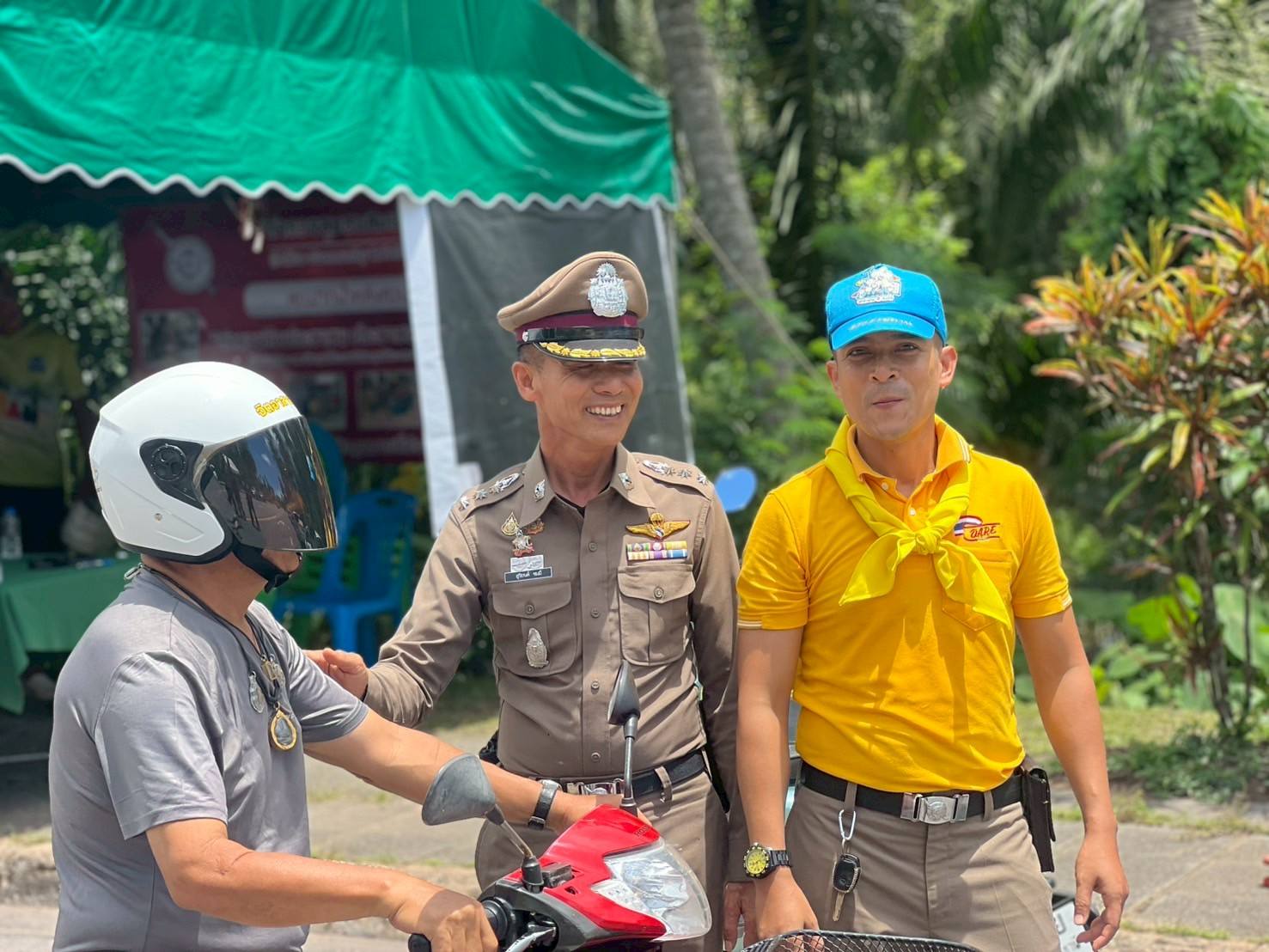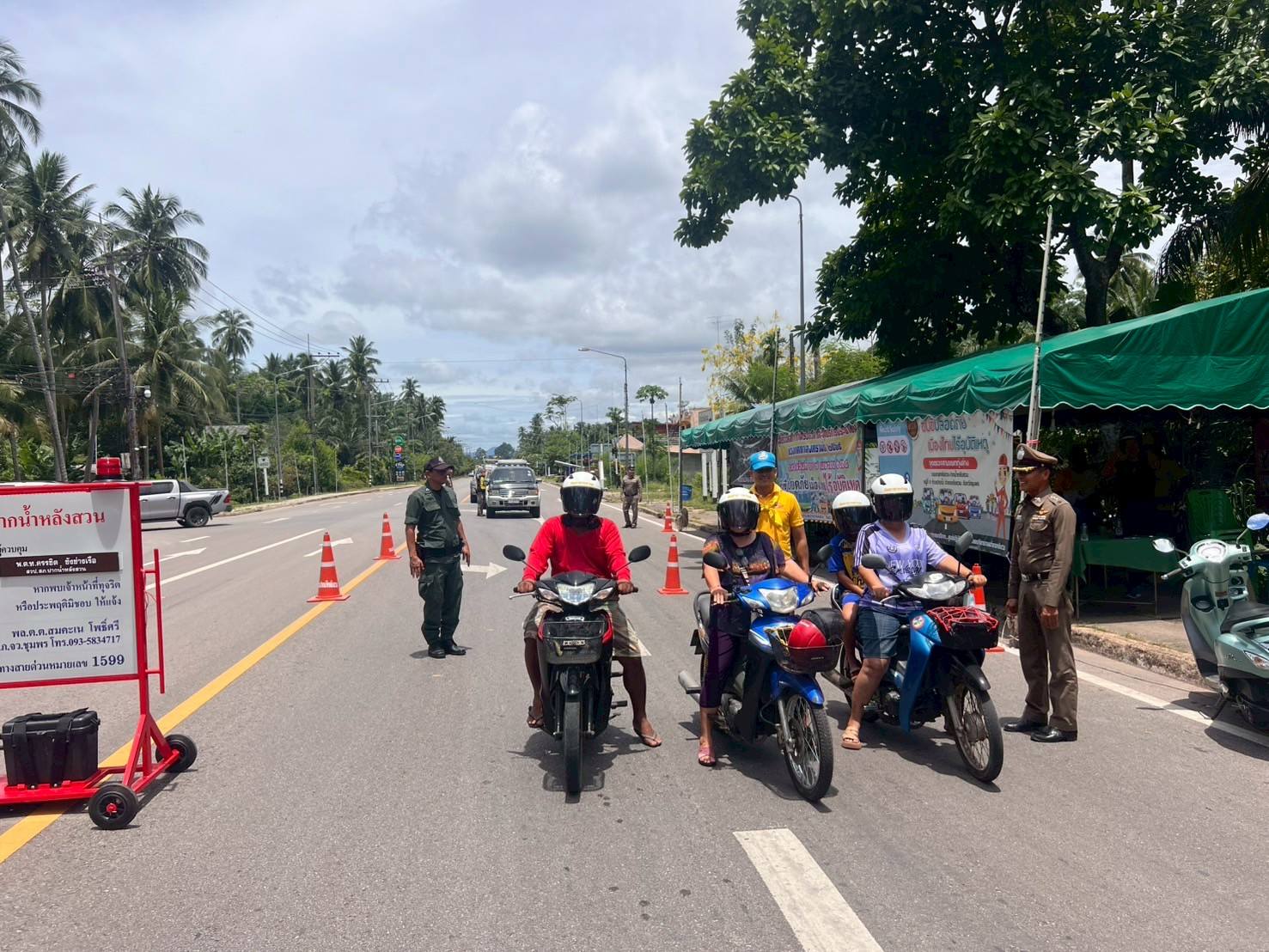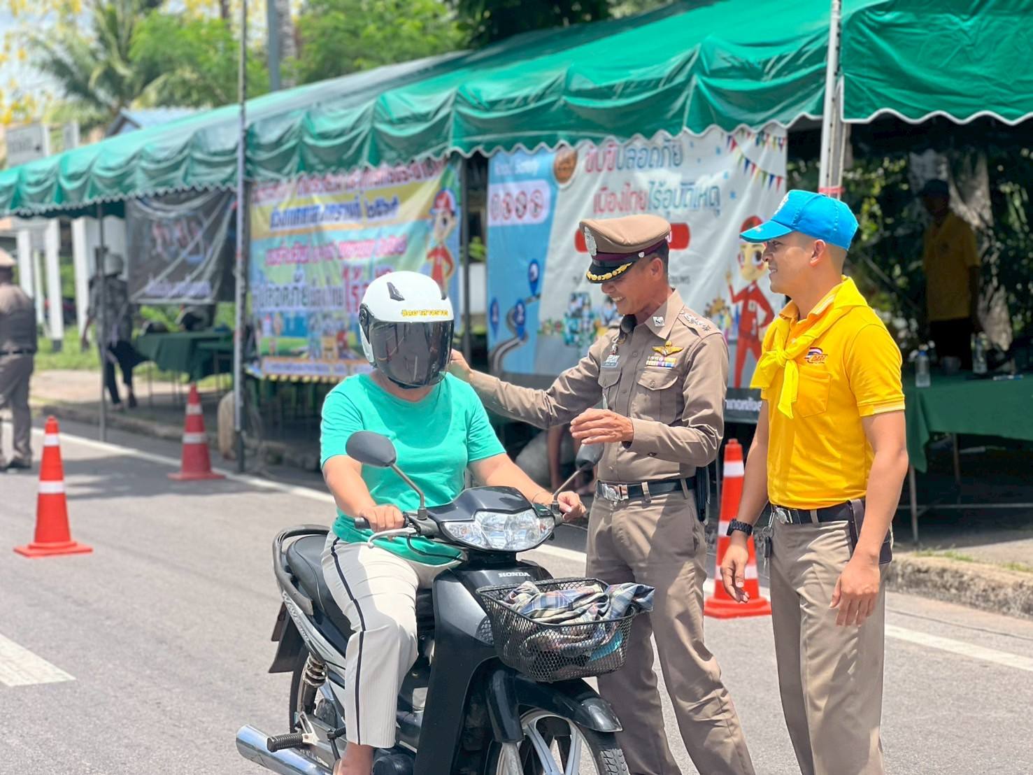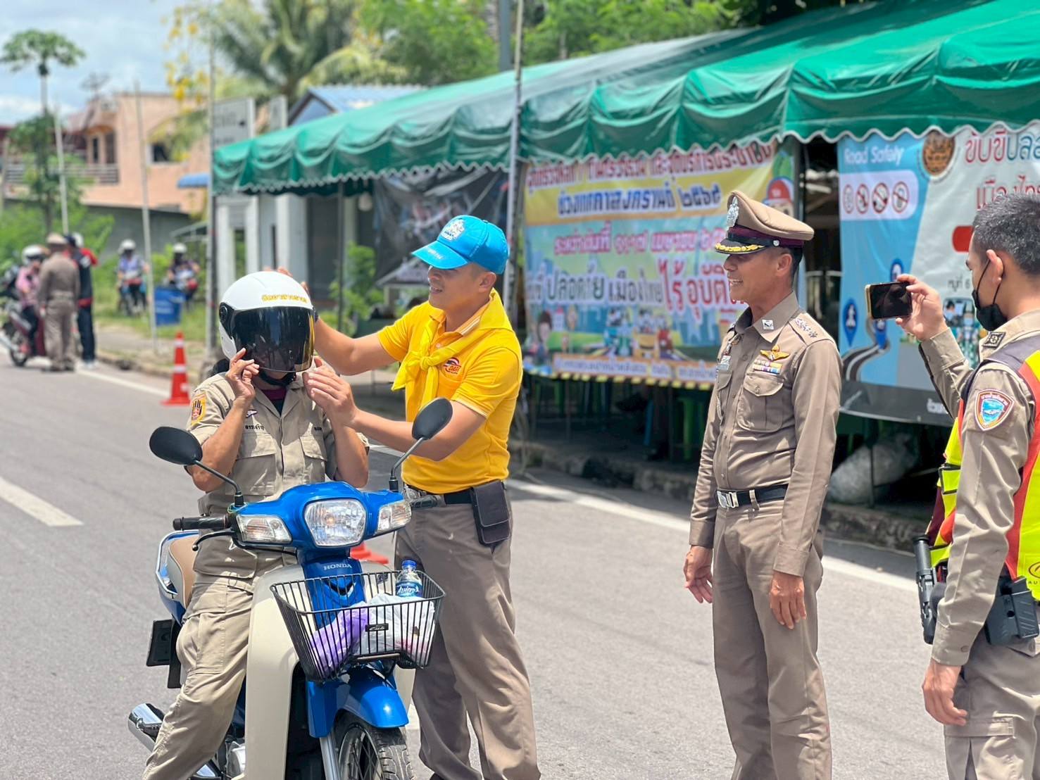 พ.ต.อ.สุริยนต์ ชมมี ผกก.สภ.ปากน้ำหลังสวน พร้อม พ.ต.ท.ครรชิต ชังช่างเรือ สวป.สภ.ปากน้ำหลังสวน ข้าราชการตำรวจจิตอาสา ชุด จราจร จนท.ชุด ชมส.ฝ่ายปกครอง และ อสม. ได้ร่วมกันดำเนินกิจกรรมจิตอาสาจราจร รณรงค์ขับขี่ปลอดภัยสวมหมวกนิรภัย เพื่อลดอุบัติเหตุในช่วงเทศกาลสงกรานต์ 2568 ได้อบรมให้ความรู้เกี่ยวกับความปลอดภัย ในการสวมหมวกนิรภัย และกฎหมายจราจรต่างๆ พร้อมทั้งได้แจกหมวกนิรภัย ให้กับประชาชนที่เข้าร่วมกิจกรรม เพื่อลดอุบัติเหตุทางถนน ในช่วงเทศกาล สงกรานต์ 2568 ณ จุดตรวจสามแยกทุ่งล่าง ต.ปากน้ำ อ.หลังสวน จ.ชุมพร โดยมีประชาชนเข้าร่วมโครงการ จำนวน 22 คน
