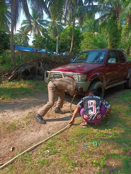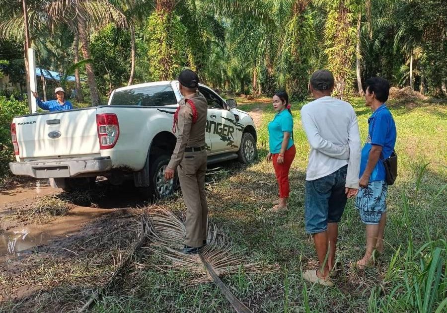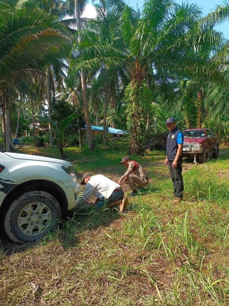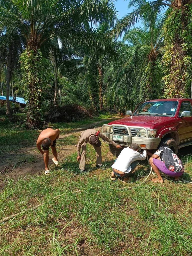 สายตรวจตำบลบางมะพร้าว ช่วยเหลือประชาชน รับแจ้งว่ามีรถยนต์ติดหล่มอยู่ภายในสวนปาล์ม