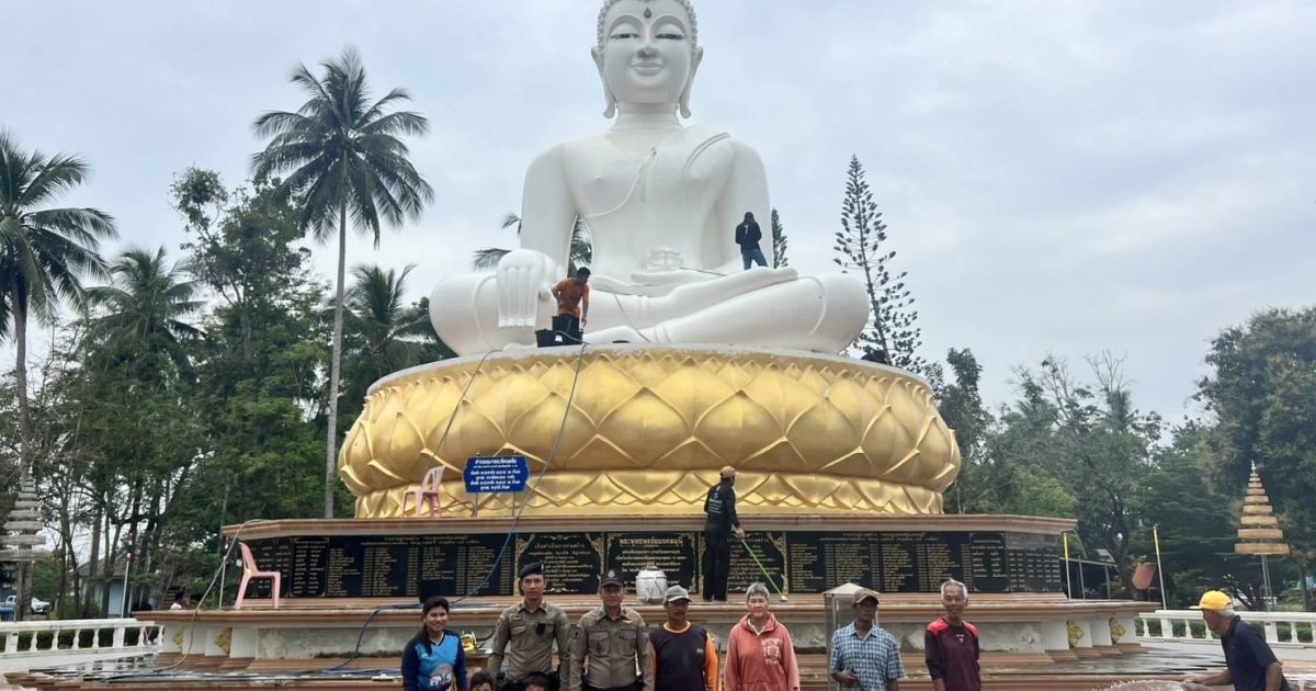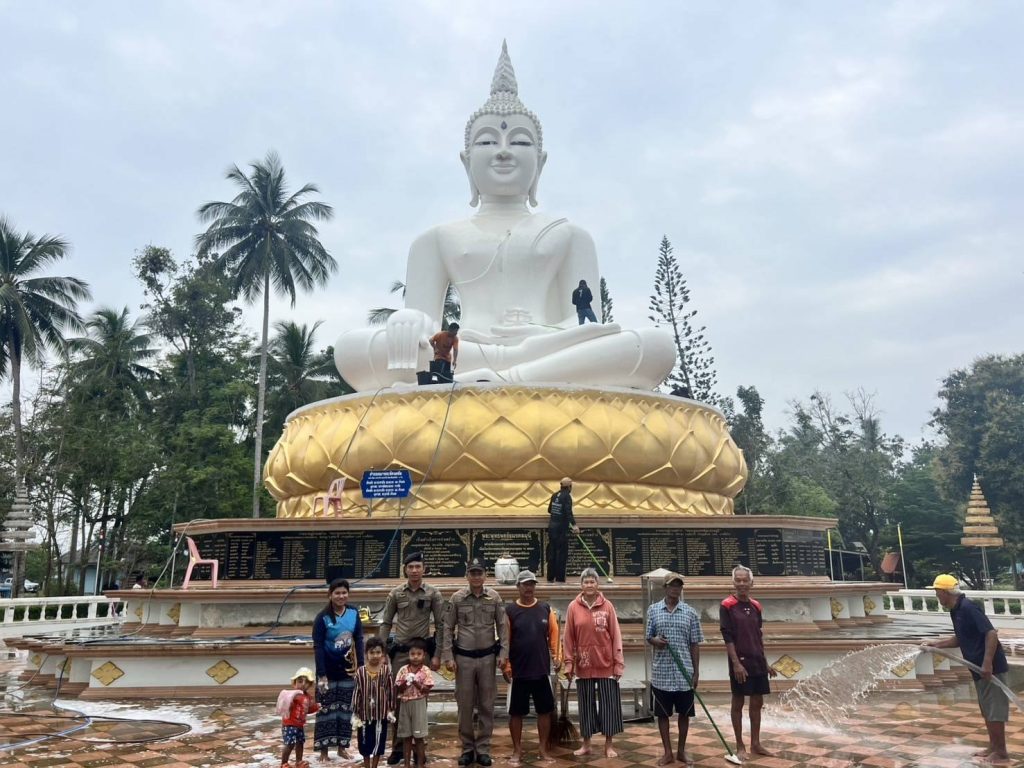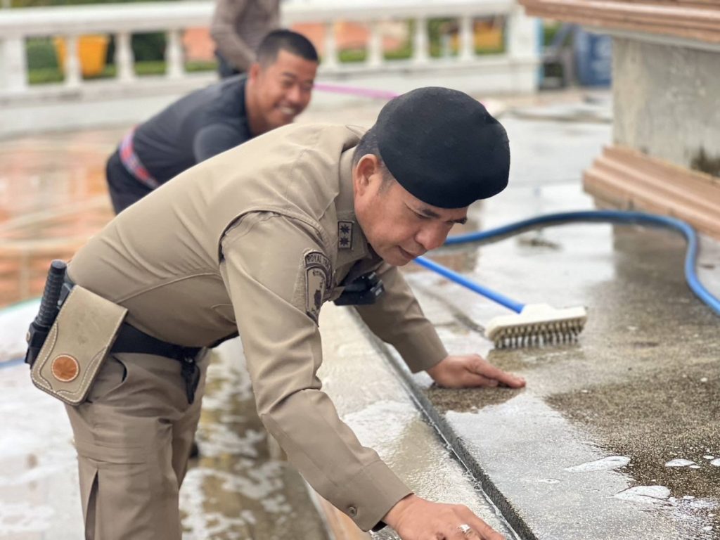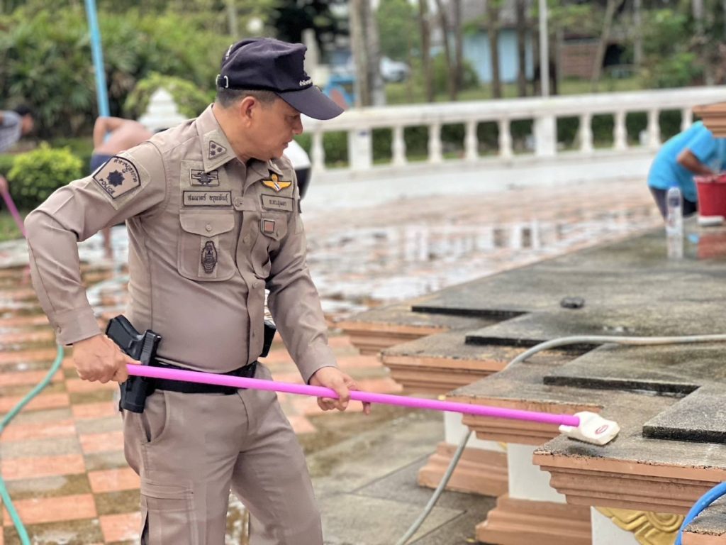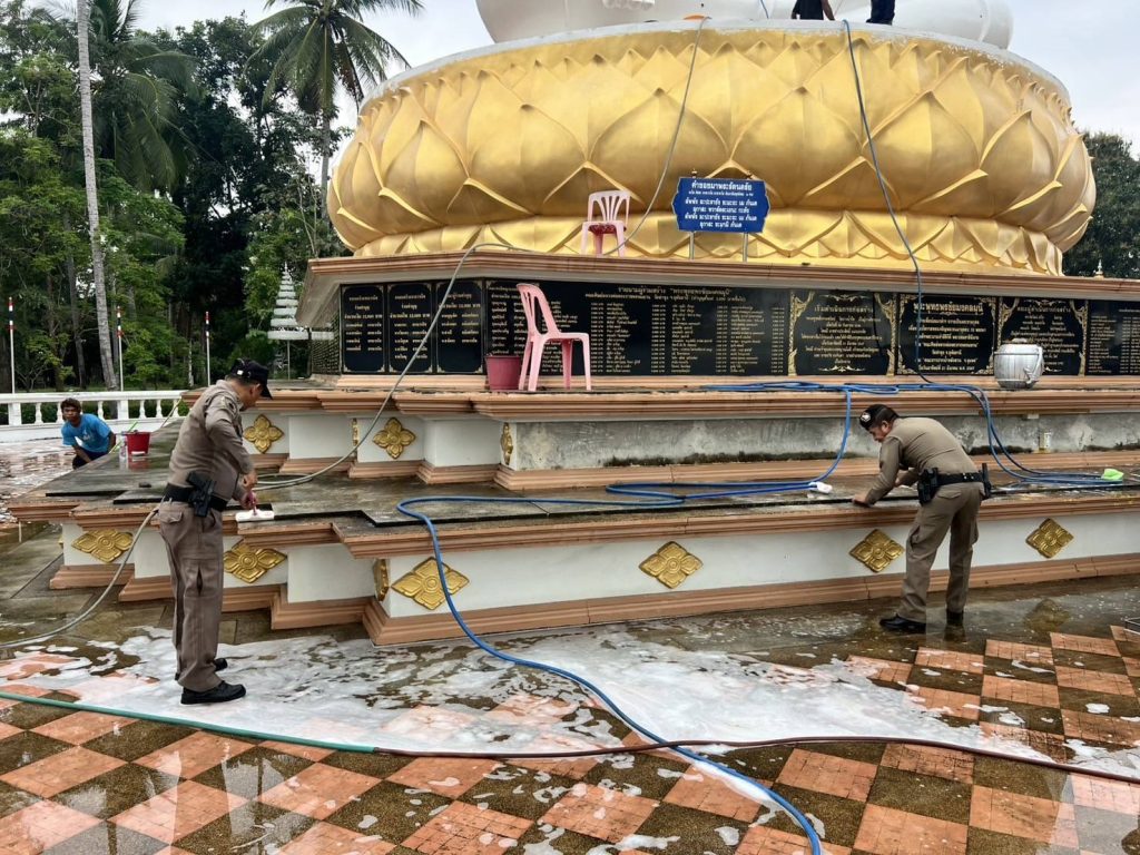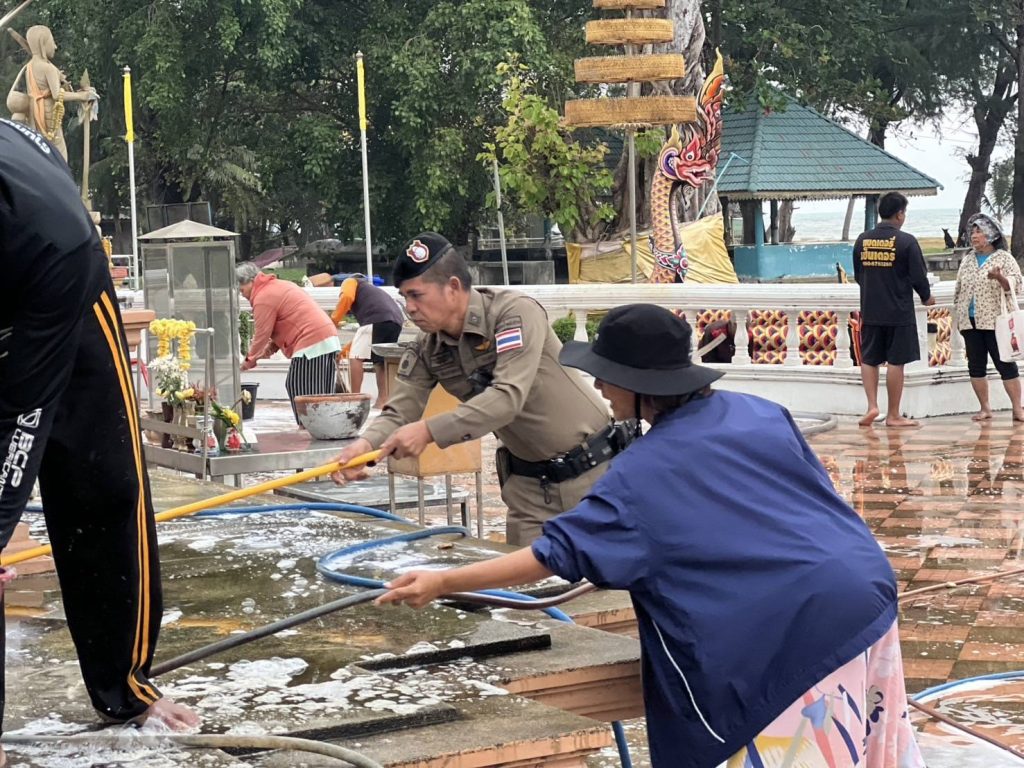 สายตรวจรถยนต์ร่วมกับประชาชนจิตอาสา ทำความสะอาดพระใหญ่ชัยมงคล วัดแหลมสน