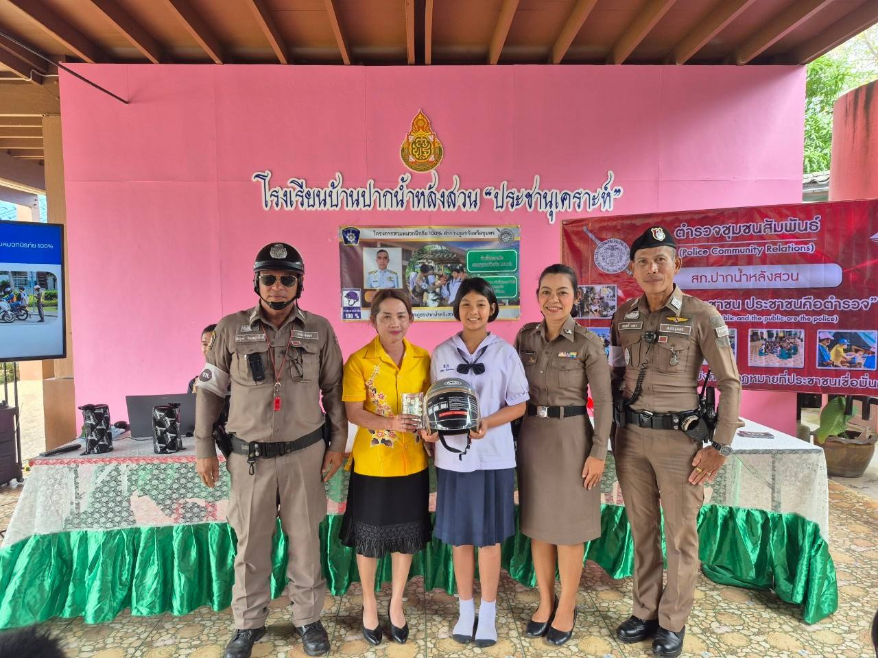 ร่วมขับเคลื่อนตามกิจกรรมมาตรการองค์กร เพื่อความปลอดภัยทางถนน ตามโครงการสวมหมวกนิรภัย 100% ขณะขับขี่ของเด็กนักเรียนและผู้ปกครอง โดยมีการให้ความรู้เรื่องกฎหมายให้แก่เด็กนักเรียนเพื่อเสริมสร้างจิตสำนึกในการขับยานพาหนะที่ดีพร้อมการยกตัวอย่างการเกิดอุบัติเหตุรุนแรงเพื่อให้เด็กและผู้ปกครองรู้สึกตระหนักถึงการเกิดอุบัติเหตุ